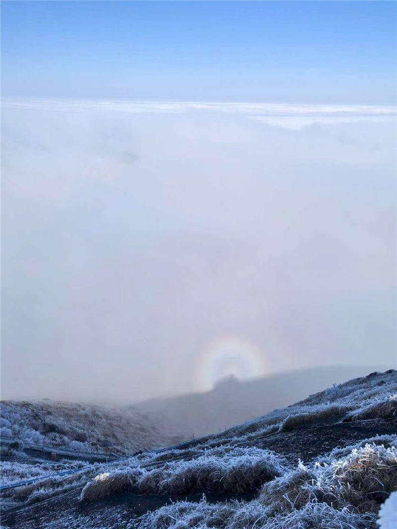 金铙山迎来2026年首场雾凇。